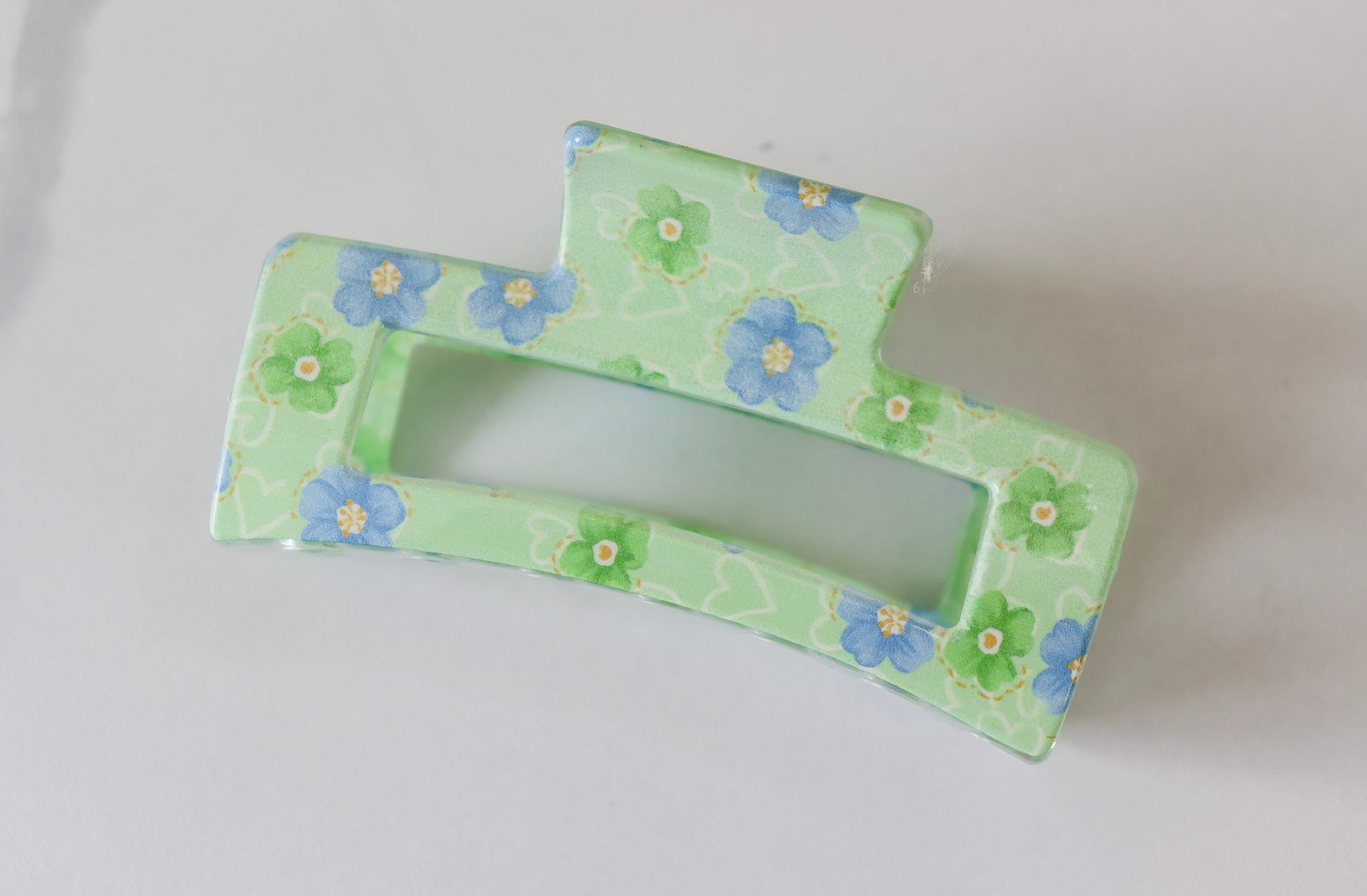 Blue and Green Flowers on Light Green Color Hair Clip