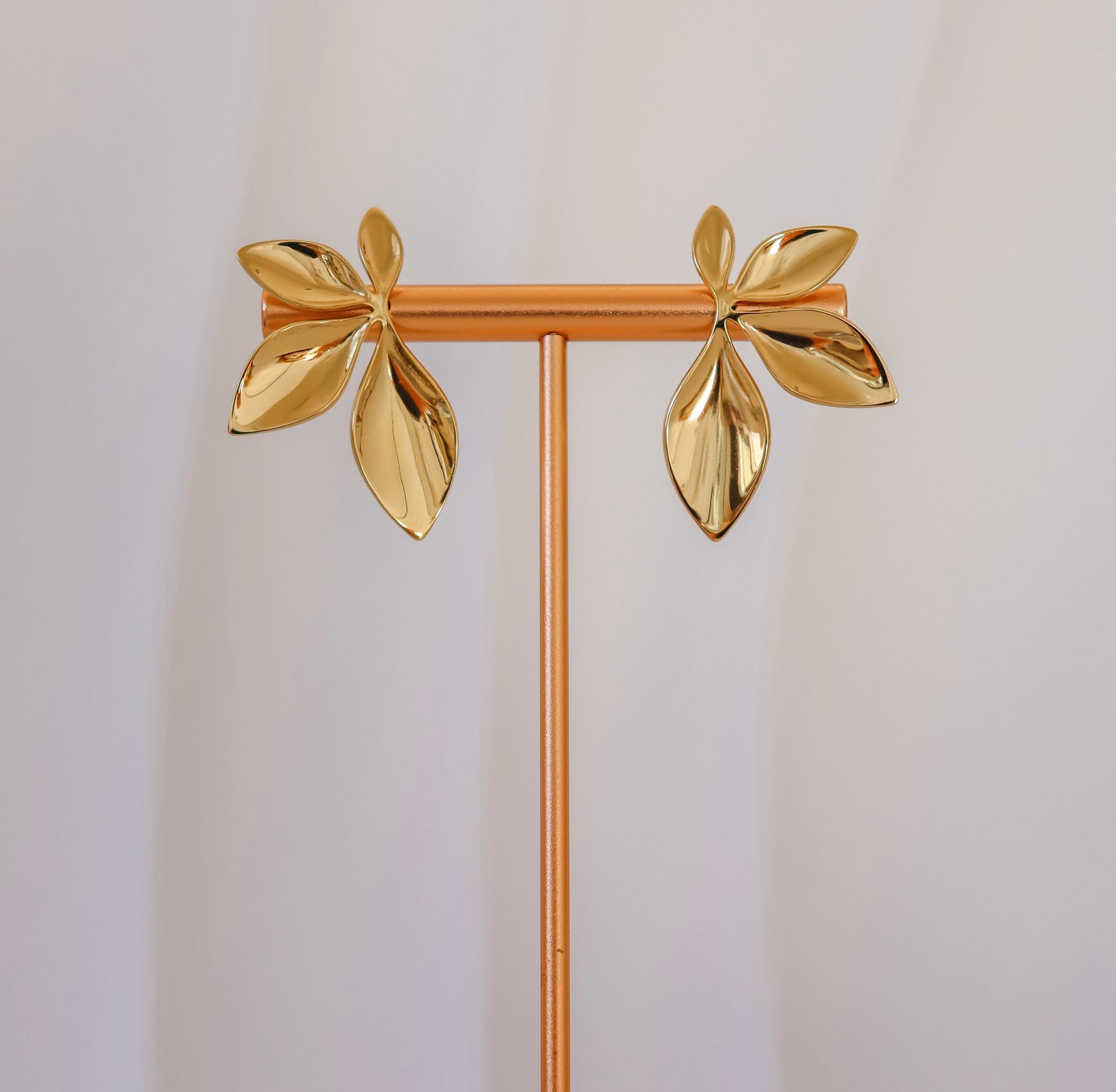 Waterproof, Non Tarnish, Hypoallergenic Stud Flower Leaf Earrings