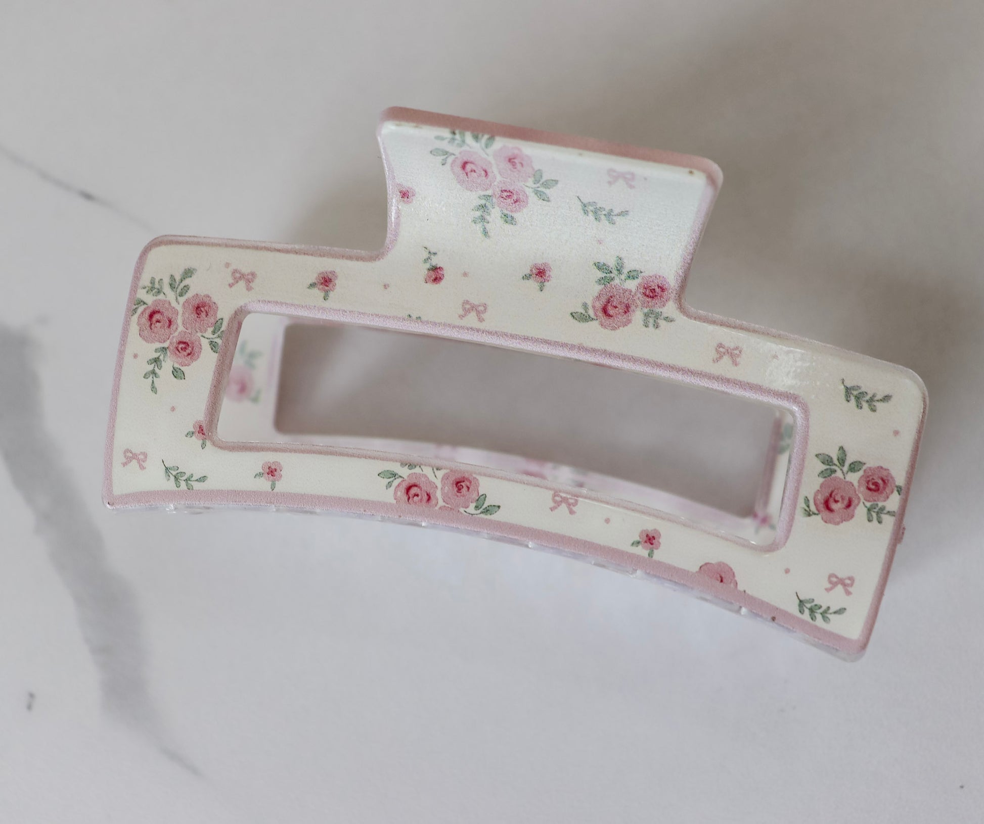 White Hair Clip with Pink Roses